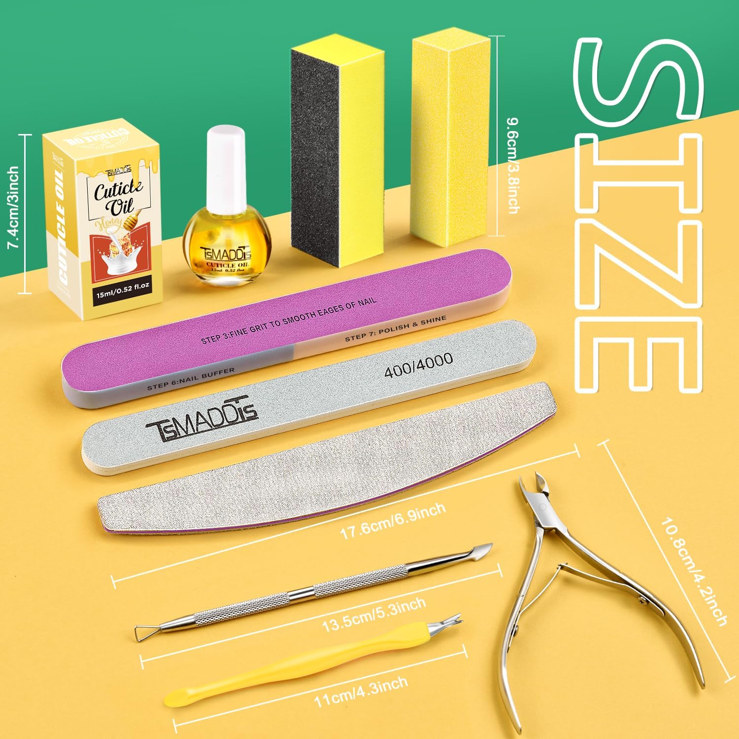 Achieve salon-quality nails from the comfort of your own home with the TsMADDTs Nail Buffers and Files set. This kit includes everything you need for perfect nails, including 2 polishing nail buffers, cuticle nippers, a cuticle pusher, and cuticle oil.